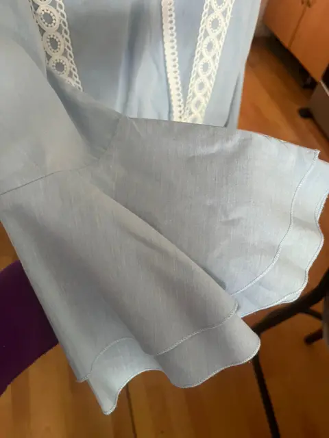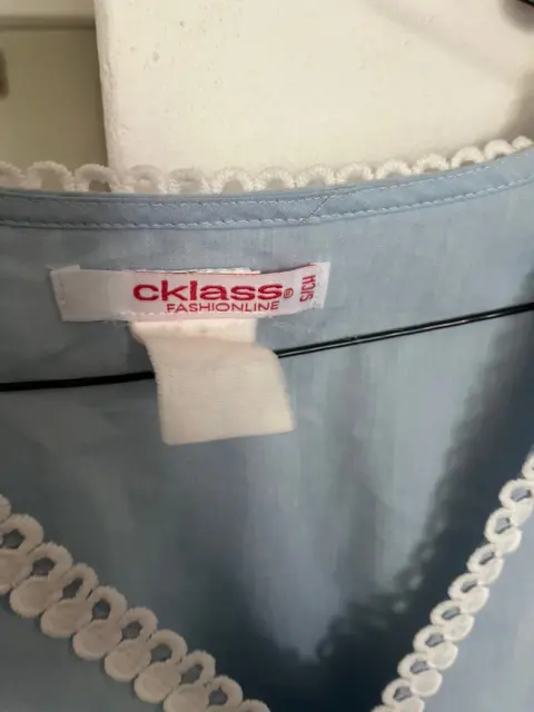 Blusa azul manga ancha cklass con encaje blanco en medio , resorte en la parte de abajo y manga ancha