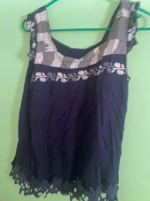 Blusa azul marino. Blusa Super fresca, en la parte de abajo, trae unas flores azul marino, guardadas y de tirante grueso