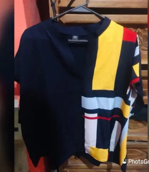 Linda blusita de SHEIN talla 2xl en color azul marino con detalles de colores en cuadros es súper fresca tela no vaporosa. No transparenta ideal para una talla 36-38 mexicana