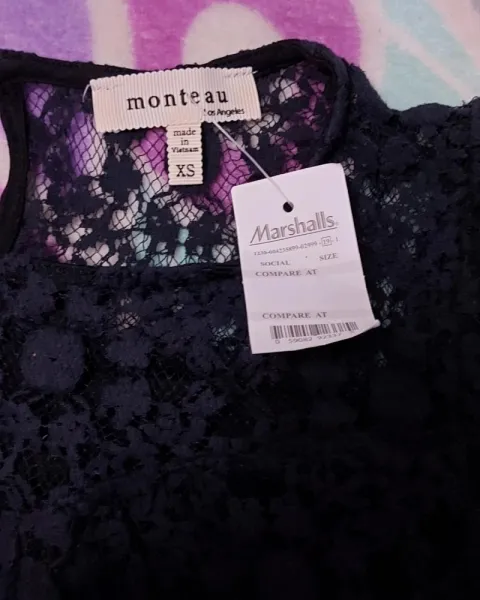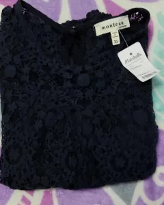Linda blusa de manga 3/4 azul marino es de encaje y trae forro
