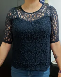 Blusa azul marino de encaje