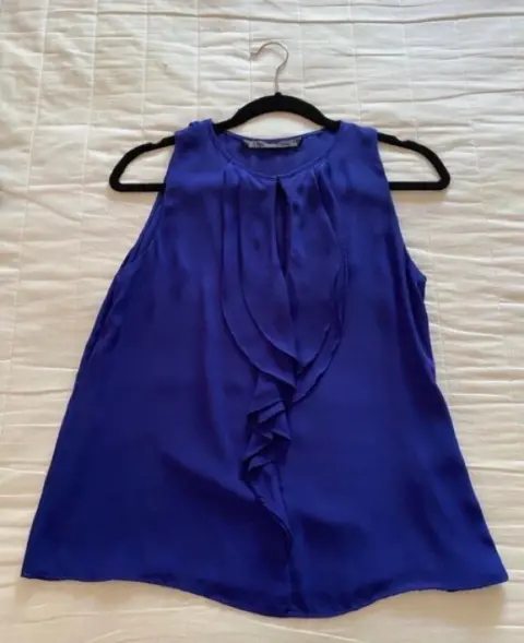 Súper bonita y vestidora blusa sin mangas con olanes y abertura enfrente! Marca Zara. Solo puesta una vez, esta perfecta!!!