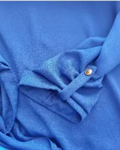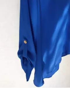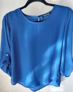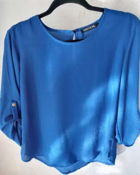 Blusa azul rey. Blusa azul rey es más larga de atrás un poco, cuenta con abertur en la espalda alta zona abajo de cuello y un boton. En la mangas cuenta con botones simulando recogido en las mismas son adorno. Talla 38. Si te interesa algo más te mejoro precio.