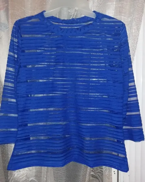 Blusa azul rey con transparencias. Esta blusa no es de marca ya que la mande hacer para un evento y solo se uso una vez, tiene transparencia que le dan un toque Sexy ligera, y combina muy bien con jeans de mezclilla y zapatillas, talla s/M. Visita mi closets siempre hay algo para ti no te pierdas la experiencia.