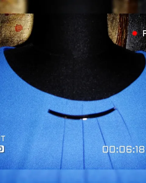 Blusa azul Stella Carter. Blusa azul con ligue en cuello super elegante