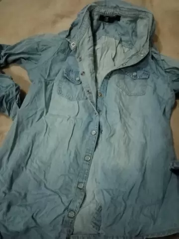 Blusa azul tipo mezclilla. Hermosa blusita azul claro la tela es fresca y super cómoda, de botones de broche, puede ser formal
