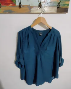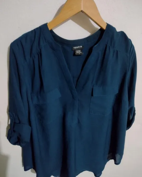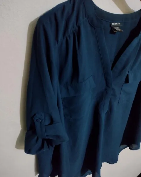 Blusa azul torrid. Bonita blusa, las mangas se pueden arremangar, con bolsillos al frente. En perfecto estado