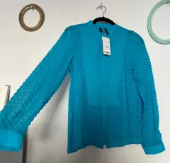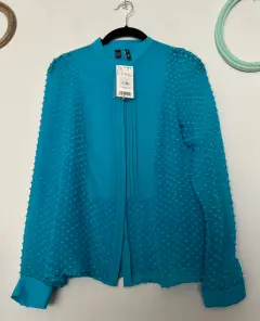 Blusa Azulada. Hermosa blusa nueva, color vibrante y de temporada, manga larga, tienen botones ocultos, la tela tiene textura.