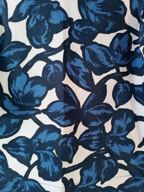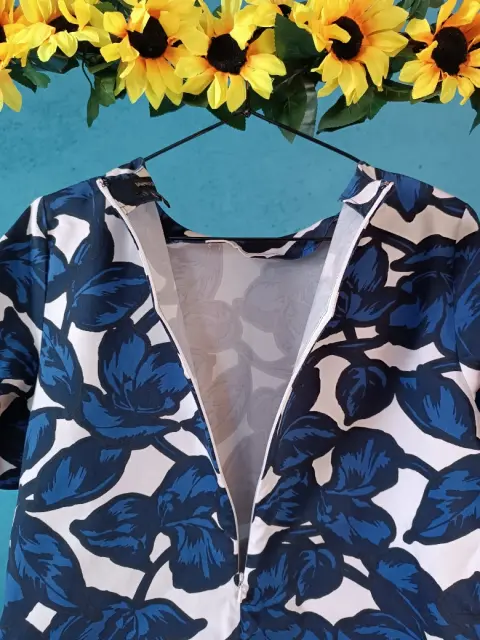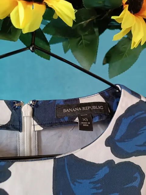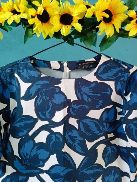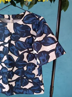 Blusa BANANA REPUBLIC. Blusa con estallido de flores azules que contrastan con el blanco.La blusa es corta y las mangas anchas ,la tela es cómoda y ajusta perfecto.
