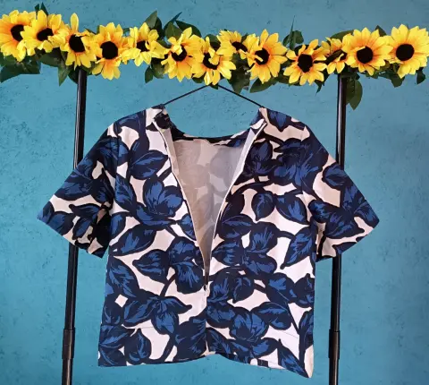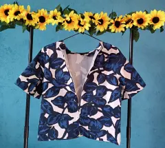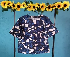Blusa con estallido de flores azules que contrastan con el blanco.La blusa es corta y las mangas anchas ,la tela es cómoda y ajusta perfecto.