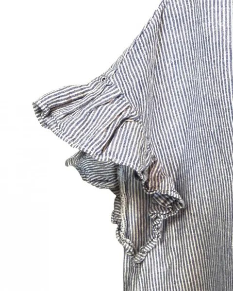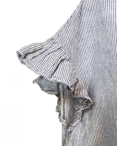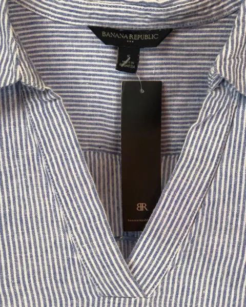 Blusa Banana Republic en líneas azules, con escote en V y escarolas en los hombros, luce súper linda 🤗