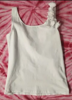 Blusa básica blanca. Esta linda blusa viene en algodón stretch. El detalle de las flores la hace muy femenina. La puedes combinar con muchas de tus prendas. Un básico en tu guardarropa. Viene a la talla.