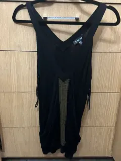 Blusa negra sin mangas hermosa , perfecta para salir de noche , lentejuela de metal color cobre stretch