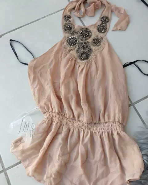Blusa bebe con pedrería color nude. Hermosa blusa NUEVA bebe, precio original $119 dls, precio de venta $600 la pedrería está completa y es algo pesada. Está demasiado bonita