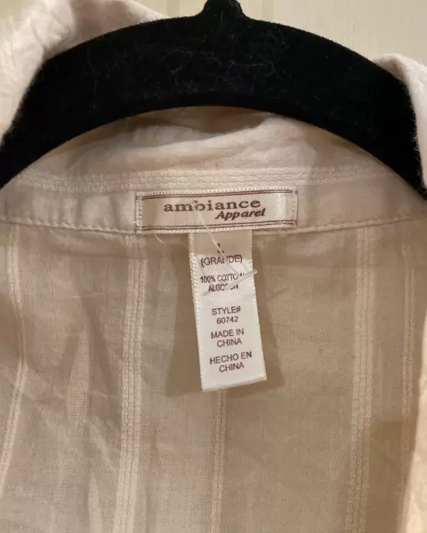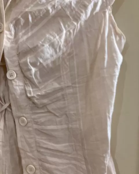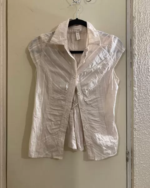 Blusa color beige, botones al frente y jareta cruzada en la espalda, dice grande pero queda mejor a S y tal vez a L