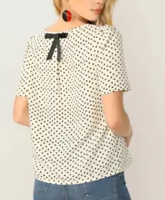 BLUSA BEIGE CORAZONES T XS, tela ligera, estampado de corazones, talla XS, sin detalles.Medidas:De axila a axila 46cmLargo 55cm