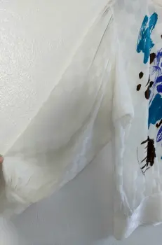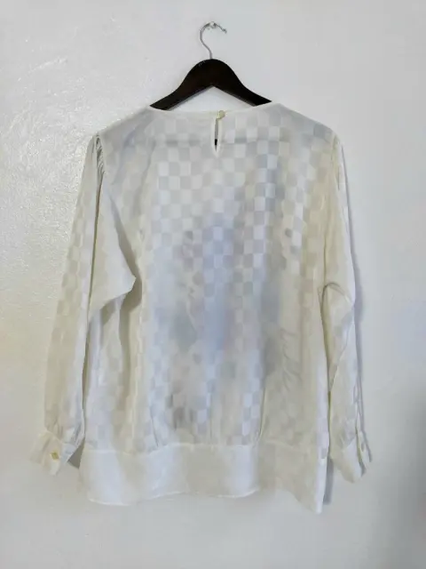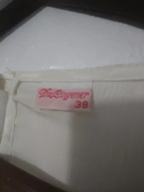 Blusa beige efecto satin. Muy bella.Talla 38, es como talla L.No tiene strech.La tela es poliéster satinada.Luce bella y elegante.