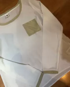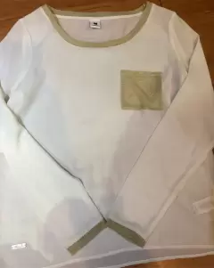 Blusa beige y dorado manga larga. Blusa manga larga casual con bolsa en frente medidas de axila 47 y de largo 57 cm