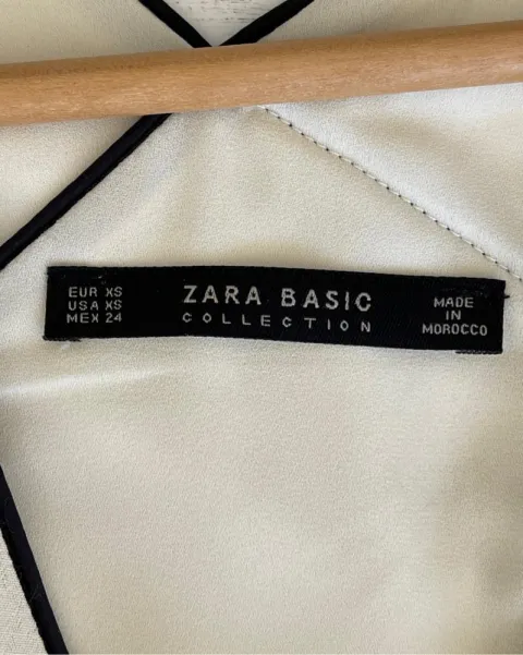 Blusa beige Zara. Talla: XSMedidas: 40 cm de axila, el largo medido desde la costura de axila 43 cmBlusa beige con orilla negra es holgada y tiene caída y la espalda está cruzada.