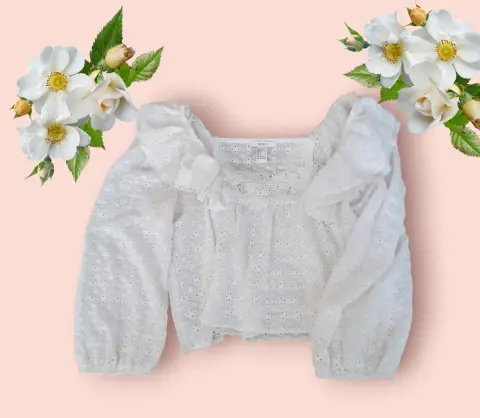 Blusa blanca. Blusa blanca con tela de encaje .Con mangas . Y un bordado en frente .