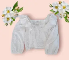 Blusa blanca con tela de encaje .Con mangas . Y un bordado en frente .