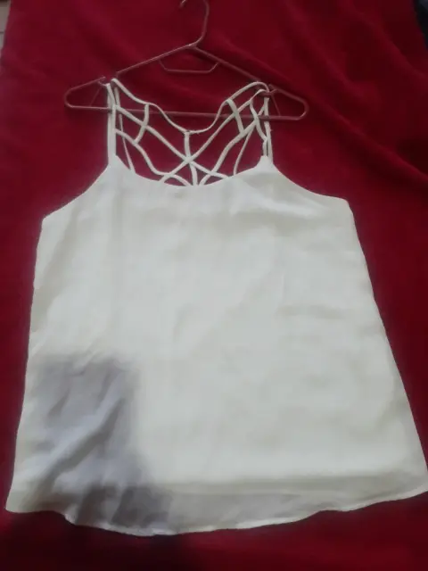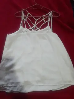 Blusa blanca. Escote con detalle de tiras al frente talla grande da una mediana Tela fresca