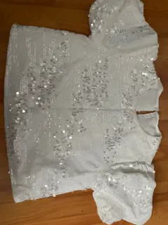 Blusa blanca aterciopelada. Bella y dulce blusa aterciopelada con pequeñas lentejuelas que la vuelven brillante sin ser exagerada ni vulgar , todo lo contrario es dulce y elegante Nueva sin estrenar $260