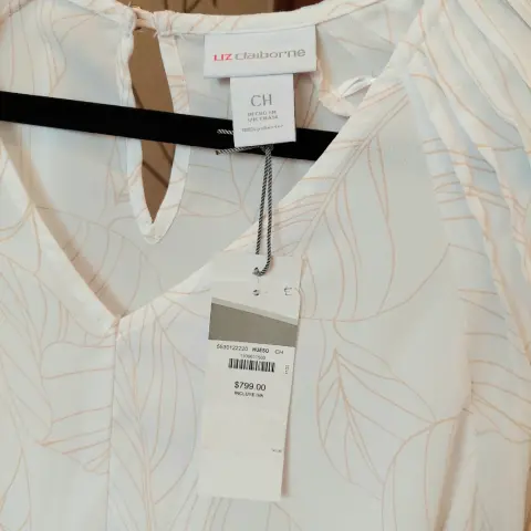 Blusa blanca con estampado. Envio sabados tal vez antes. No hago intercambios, apartados, entregas personales. Talla Chica. Liz Claiborne.