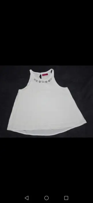 Blusa blanca de Sahara talla 9, con piedritas alrededor del cuello