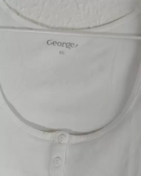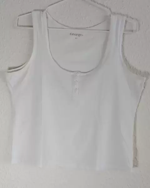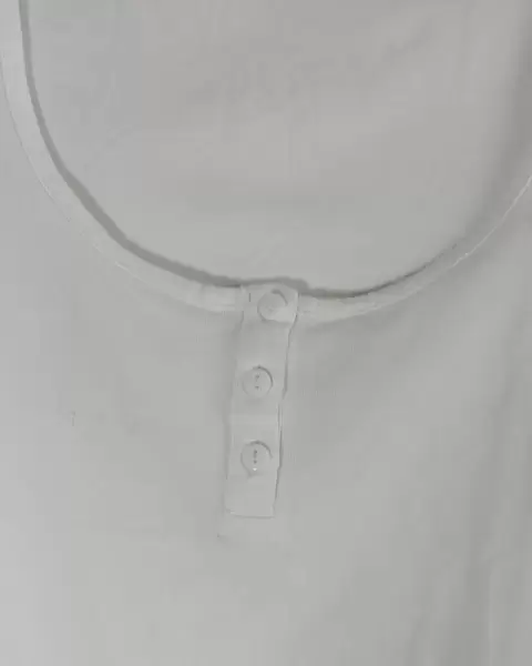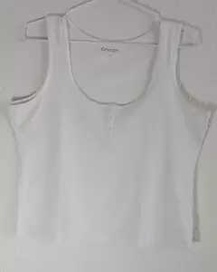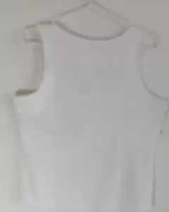 Blusa blanca lisa en muy buen estadoCon cuello en U, sin mangas y botones decorativos al frenteIdeal para llevar con pantalones de mezclillaBasica en todo guarda ropas