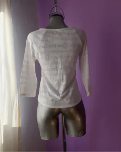 Blusa blanca manga 3/4. Preciosa blusita, manga 3/4, cuello redondo talla chica. Sus medidas son: 52cm largo, 43cm de axila a axila y 50cm de manga.