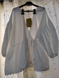 Blusa blanca mangas. Blusa blanca de diseñadora Kika Vargas talla 3XL mangas frondosas