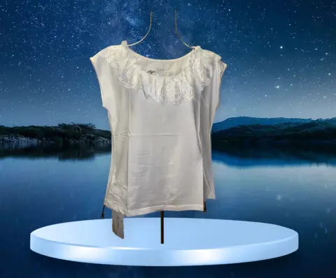 Blusa Blanca Sin Manga con Encaje. Hermosa blusa manga corta, encaje en cuello, cómoda y ligera. Talla Mediana-Grande