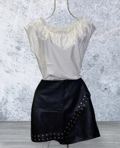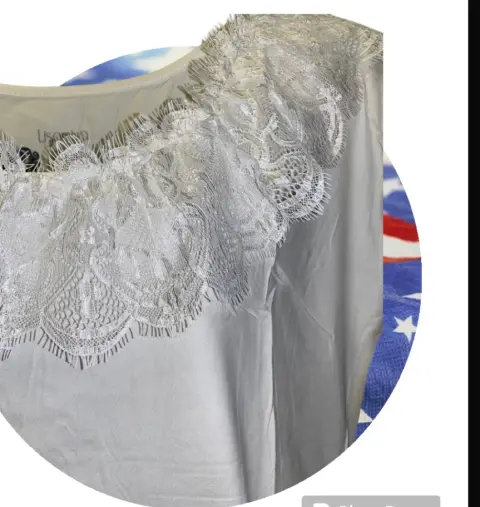 Hermosa blusa manga corta, encaje en cuello, cómoda y ligera. Talla Mediana-Grande