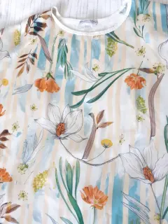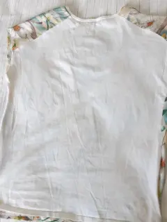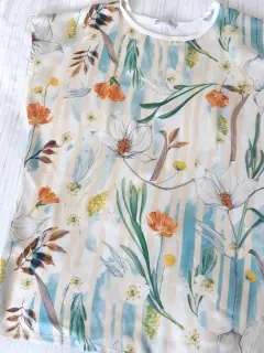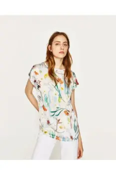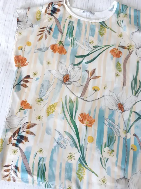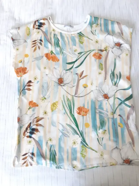 Hermosa blusa con print blosom marca Zara. Frente tela satinada de hermosos colores y la espalda es de tela tipo camiseta que la hace súper fresca cómoda y stretch. Está como nueva. Talla M