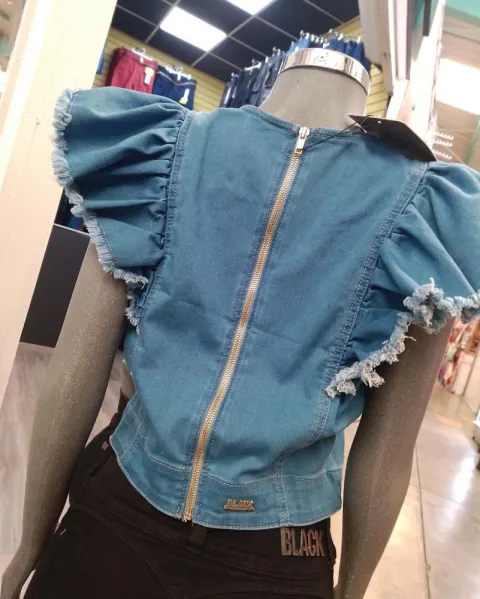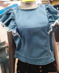 Hermosa blusa de mezclilla, con olanes, y por la parte de atrás tiene cierre, talla chico, mediana y grande.