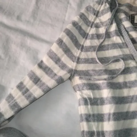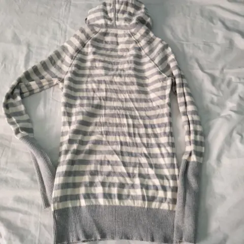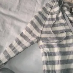 Blusa & Blusón manga de tubo con capucha y cintilla para ajustarla cuello en "U". BLUSA A RALLAS COLOR ▶️🤍 Blanca con Azul 💙 está al 100 % cero detalles 🖐️