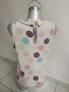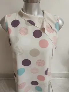 Linda blusa 👚 juvenil, color beige con bolas de colores, manga escotada, talla mediana, una sola puesta sin detalles para armar un lindo outfit...