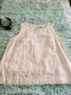 Bella blusa de algodón perfecta para esta temporada, sin mangas, super fresca, viene algo amplia, con detalles lindos, vale cada centavo.