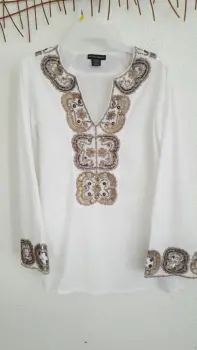 Blusa bordada. Hermosa blusa bordada en mangas y cuello con detalles en tonos dorados, fresca y Bohemia