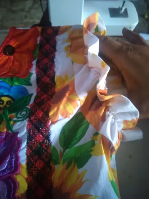 Hermosa blusas bordada istmeña solo por la parte de enfrente sobre popelina strech estampada con detalles de elástico en las mangas completamente nuevo