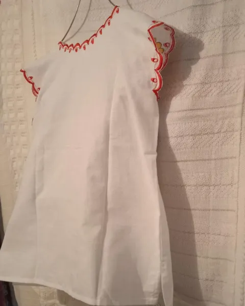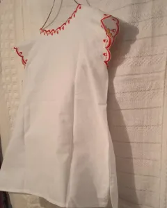 Largo 59 cmAncho de A a A 48 cmCuello redondoTela de LinoÚnica talla