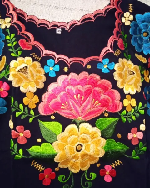 Blusa bordado Yucateco. Talla 38En las orillas del cuello y mangas está bordado de color rosa.Cuello redondoLargo 66 cmAncho de A a A 53 cmÚnica tallaÚnico modeloTela Lino