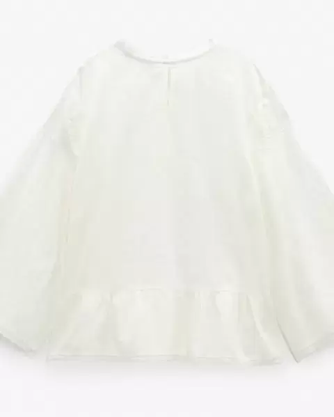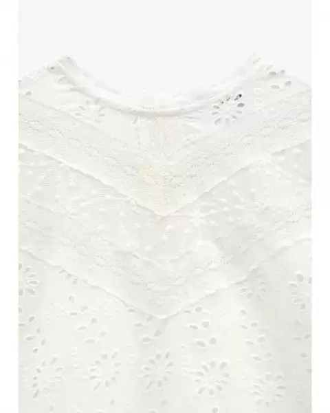 Blusa bordados. Blusa con bordados con perforados. Blanco. Talla XS (24).