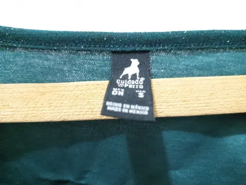 Blusa brillos verde cuidado con el perro. Bonita blusa corta de manga larga.Verde con brillos, ligera y elegante.Talla ch