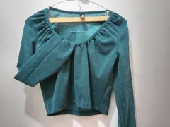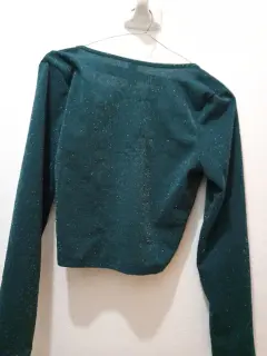 Bonita blusa corta de manga larga.Verde con brillos, ligera y elegante.Talla ch