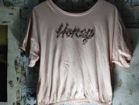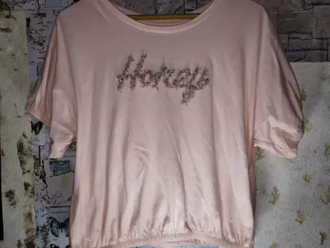 Blusa C&A color rosa con aplicaciones. Blusa color rosa C&A, color rosa con aplicaciones, una sola puesta, sin detalle, a la cintura con resorte en cintura y brazos