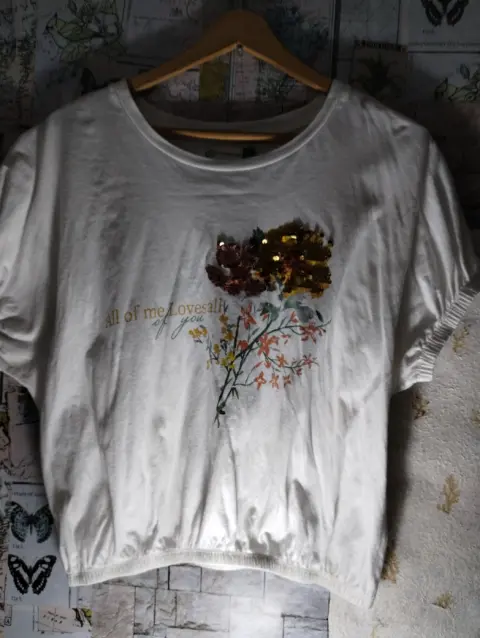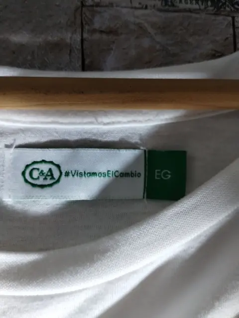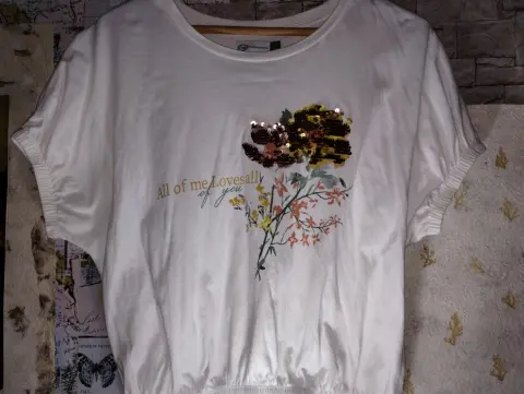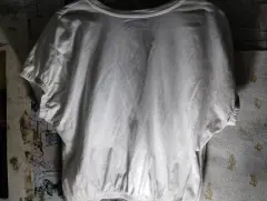 Blusa C&A color beige con aplicaciones, a la cintura, con resorte en cintura y brazos, talla EG, una sola puesta, sin detalles