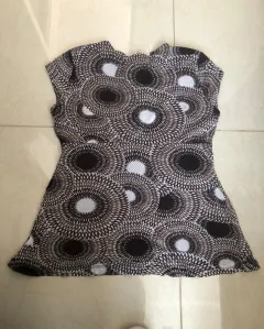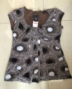 Blusa de dama manga corta, en tonos cafe y blanco, talla S, nueva con etiqueta, tiene forro cafe en la parte de abajo para que no se transparente