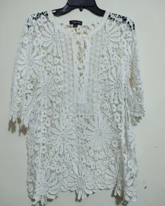 Blusa calada tipo crochet. Blusa crochet calada. Ideal para playa. 🌸Todo se va limpio y planchado (si es su caso)🌸🌟Visita mi clóset. Si te gustan varios artículos te puedo hacer un paquete a buen precio.